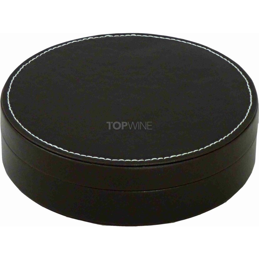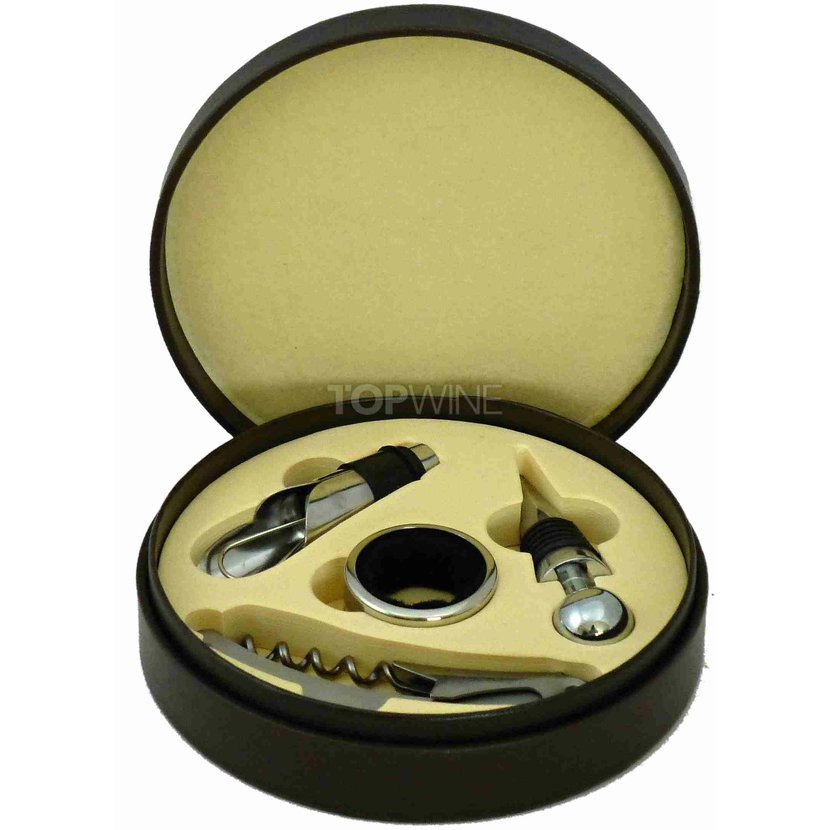 Čierna okrúhla darčeková krabička s vinárskou súpravou - 4 pomôcky