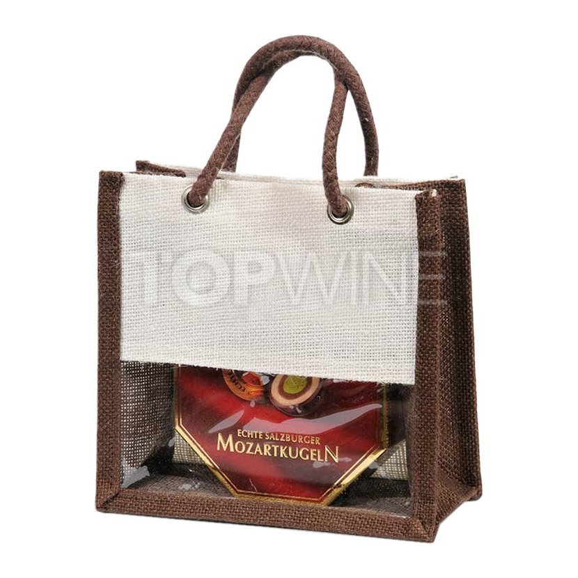 Malá jutová taška, vhodná na produkty typu - čokoládových krémov, terín, kávy, čaju, vonných sviečok a pod.