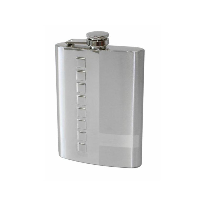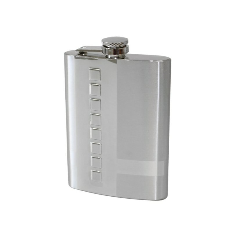 Nerezová placačka na tvrdý alkohol je vybavená výklopným vrchnákom, ktorý vďaka dômyselnému uchyteniu nemožno stratiť. Elegantná a praktická nerezová "ťapka" je skvelý spoločník na Vašich cestách, a tiež milý a elegantný darček pre Vašich blízkych, priateľov, či obchodných partnerov...