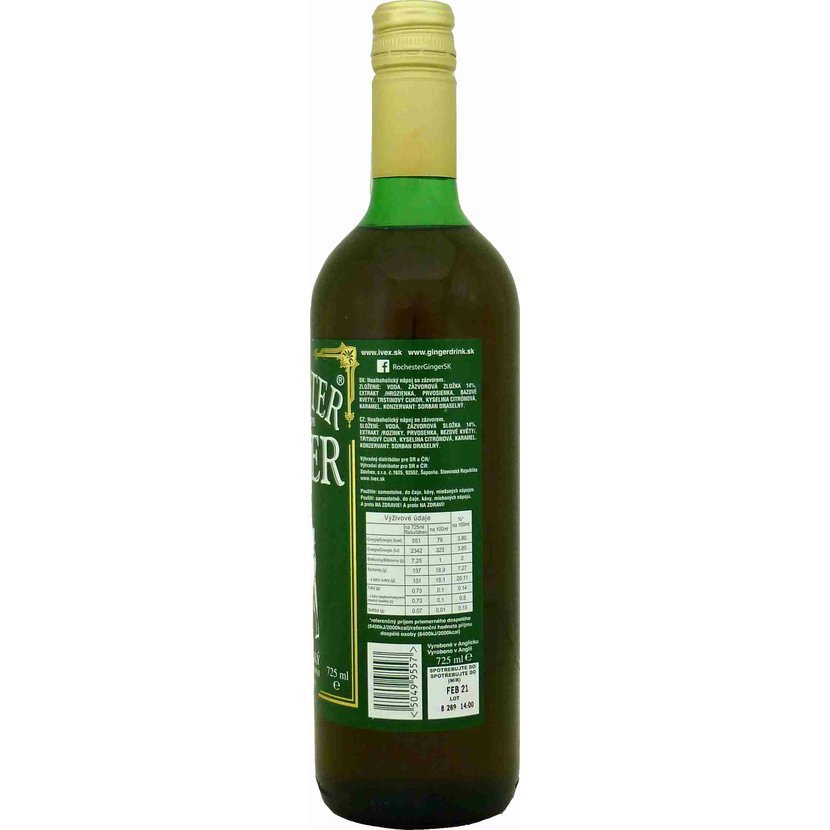 Rochester Ginger nealkoholický zázvorový nápoj - jedinečná zmes prírodných extraktov liečivého zázvoru (14%), výťažkov bazového kvetu, prvosienky a hrozienok dáva tomuto skvelému nápoju nezameniteľnú chuť a nádherné vône.